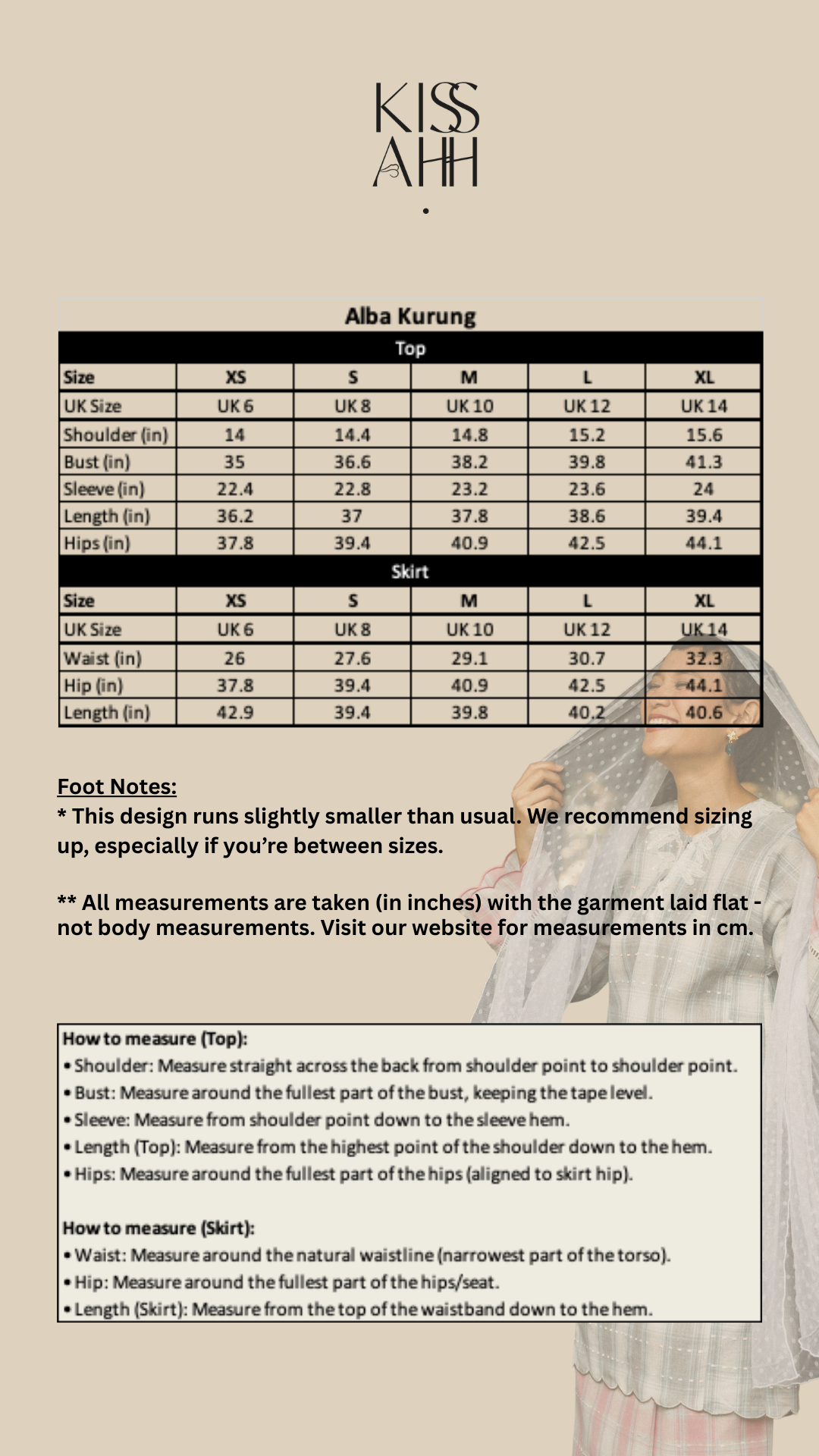 Alba is a quiet tribute to heritage. A reinterpretation of the Kurung Johor silhouette made for women who appreciate ease and elegance.