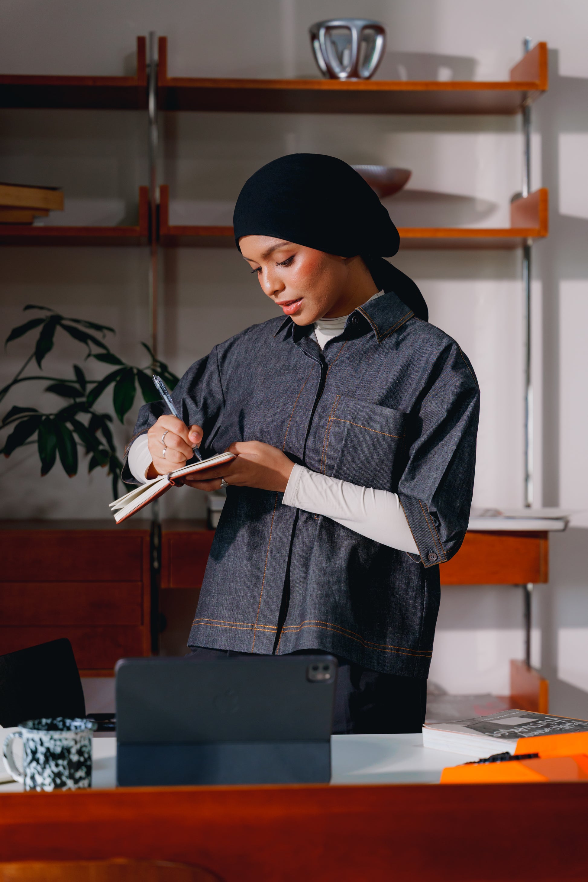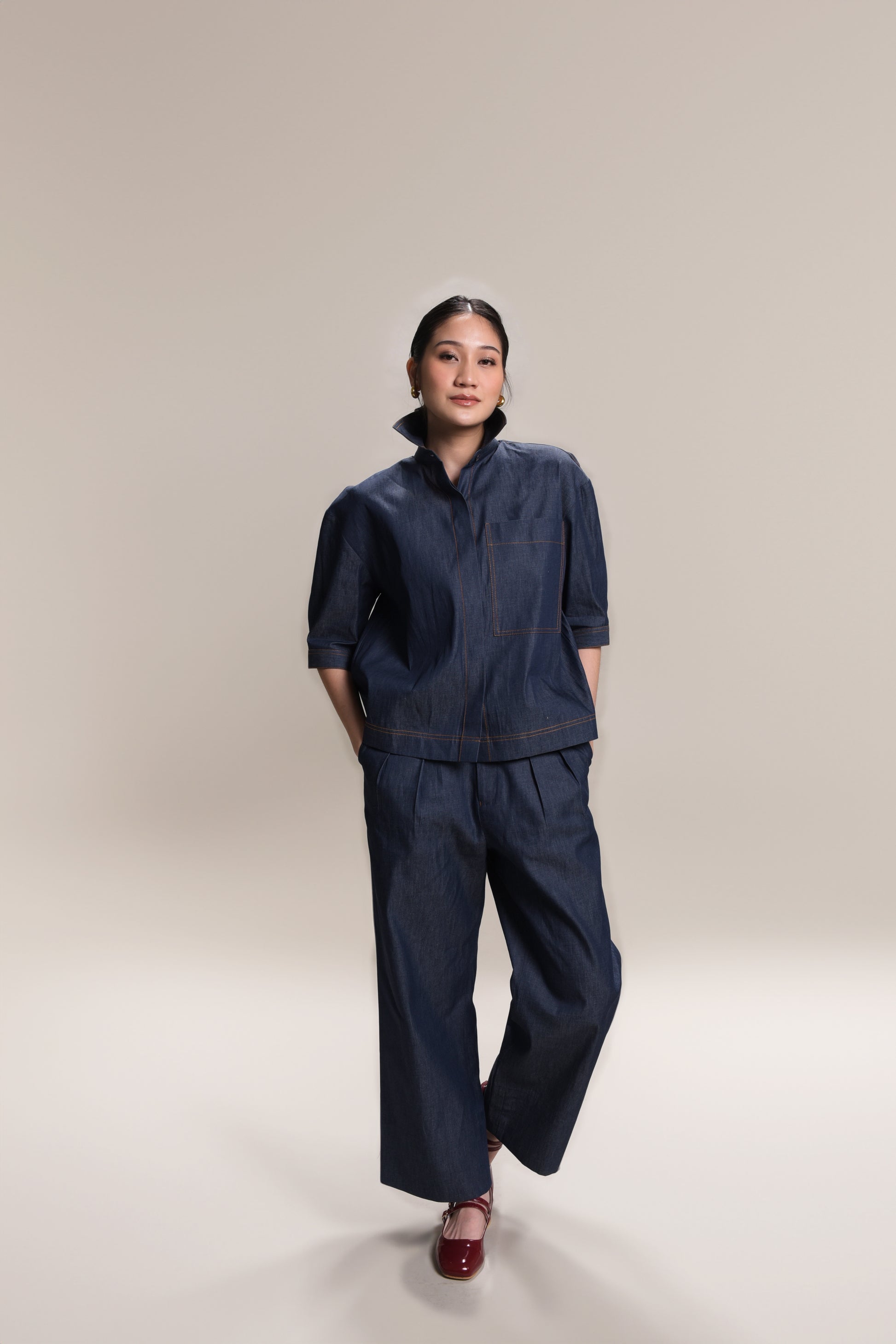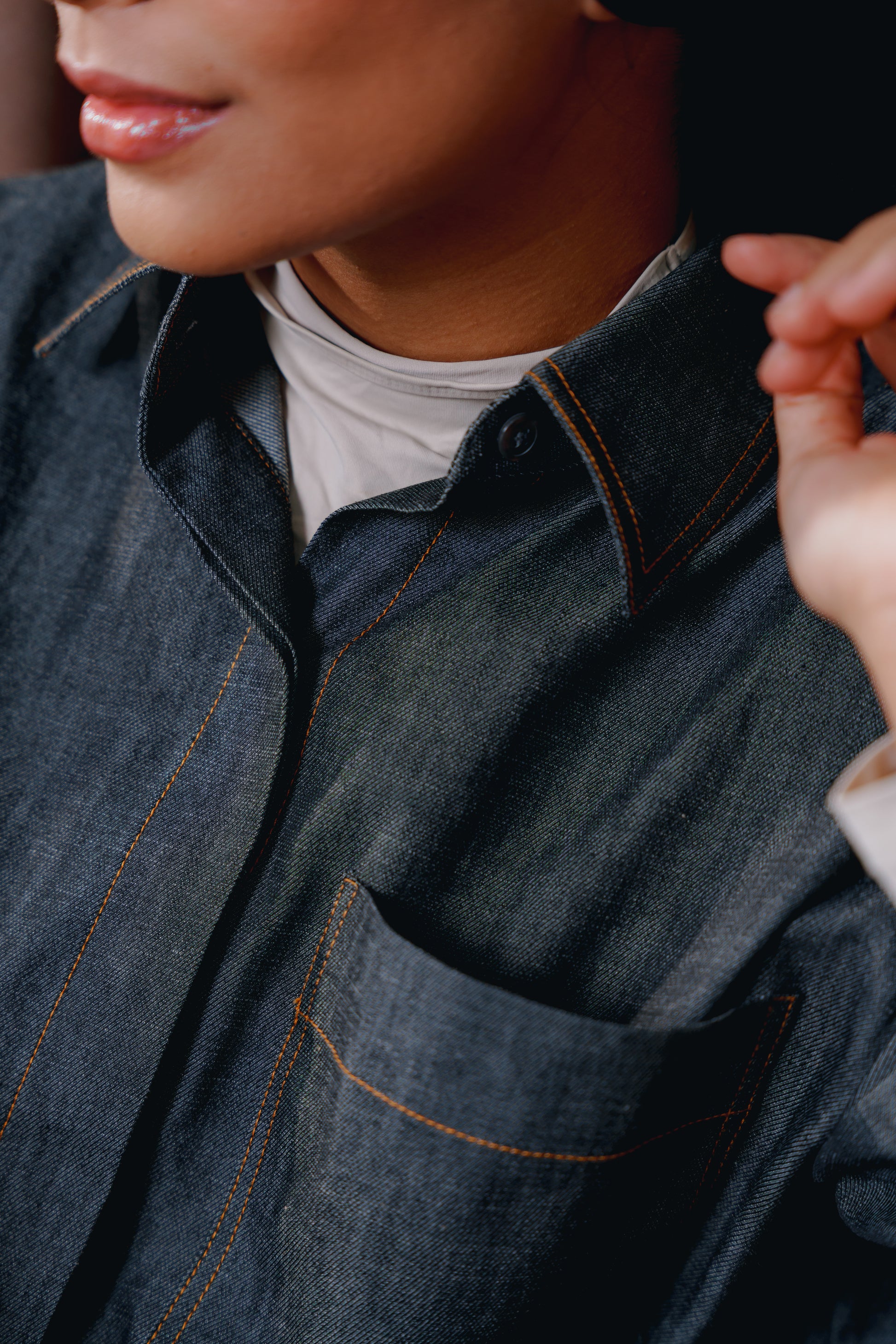 Introducing the Aster Shirt, crafted from top-quality soft denim that strikes the perfect balance between structure and comfort for an effortlessly cool urban chic aesthetic. Versatile as both a standalone shirt and a stylish outer layer, its soft structure adapts seamlessly to any wardrobe. The slight puff sleeves add a touch of soft femininity to its design. Our favorite detail? The hidden subtle embroidery tagline behind the collar, injecting personality and fun into both the garment and its wearer, reflecting the essence of our brand.