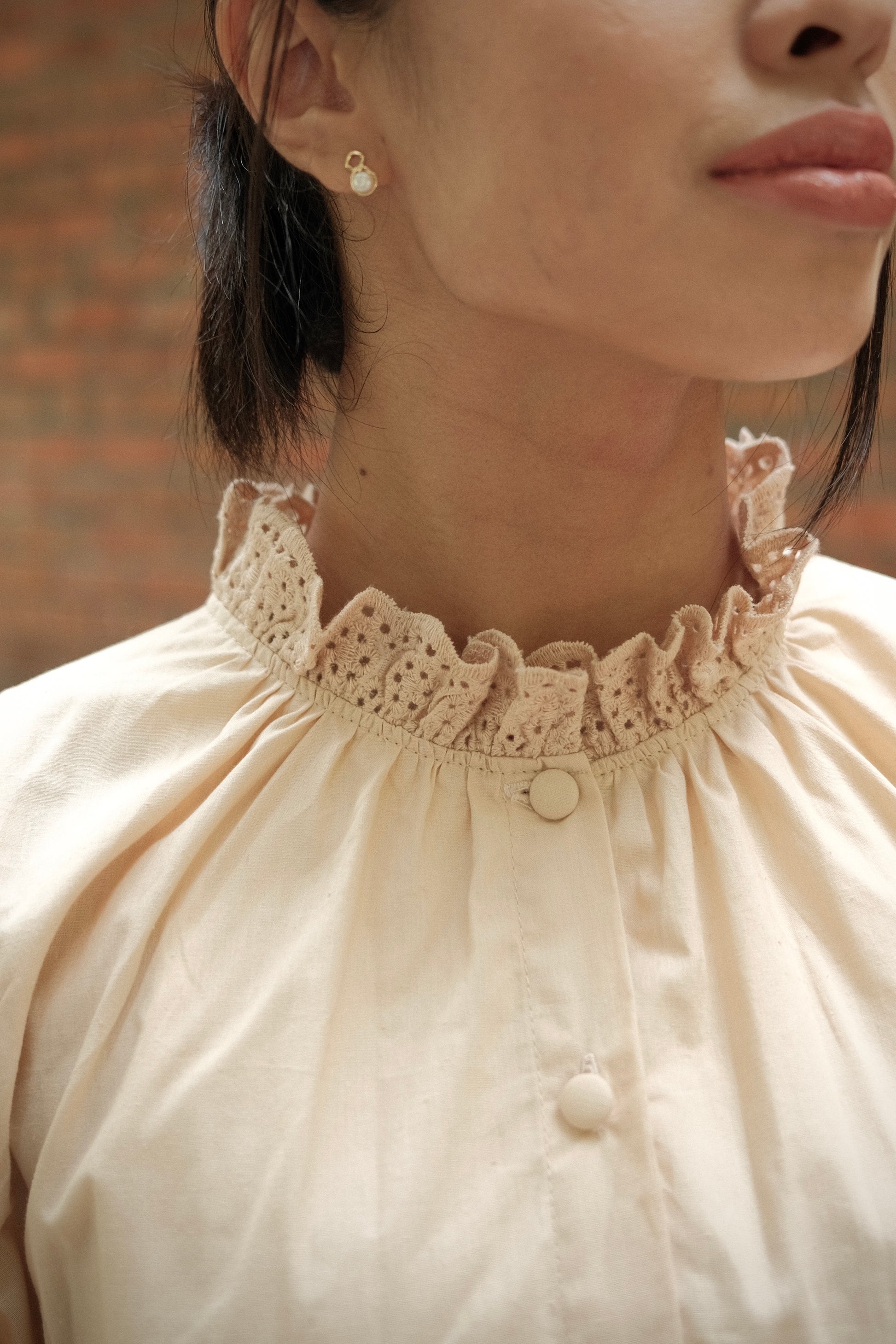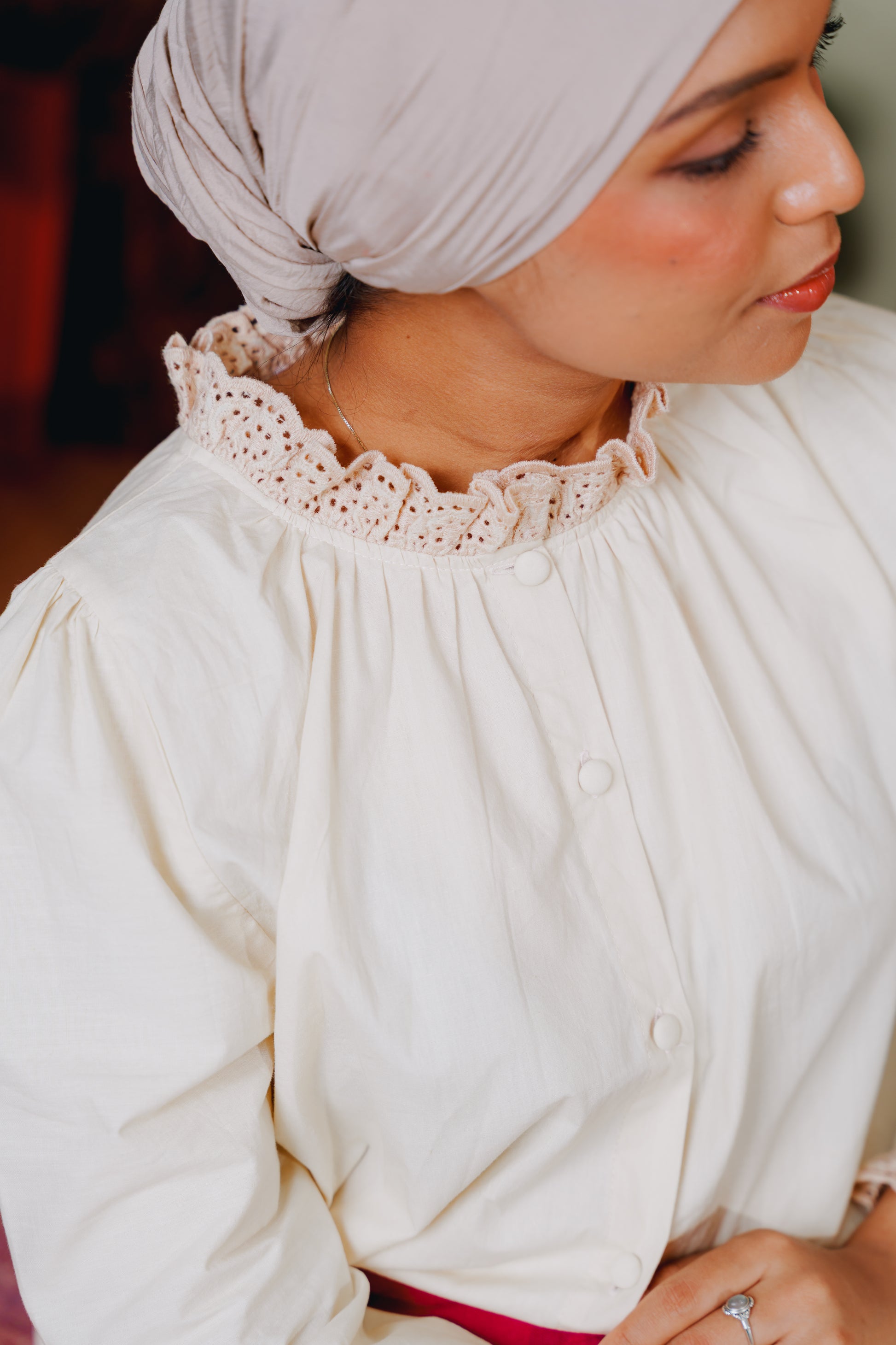The Charlotte Blouse depicts Charlotte Bronte’s vision in bringing out strength and independence in women. Look sharp and feel comfy in the Charlotte Blouse, it's perfect for infusing some flair into your wardrobe. The straight cut pattern is practical for everyday wear and suitable for the office, or social gatherings. Embellished with english embroidery laces on the collar and sleeves, this blouse balances elements of sophistication and modesty. Crafted with 100% cotton and a loose fit, you can look good and move freely - with no sacrifice in style!