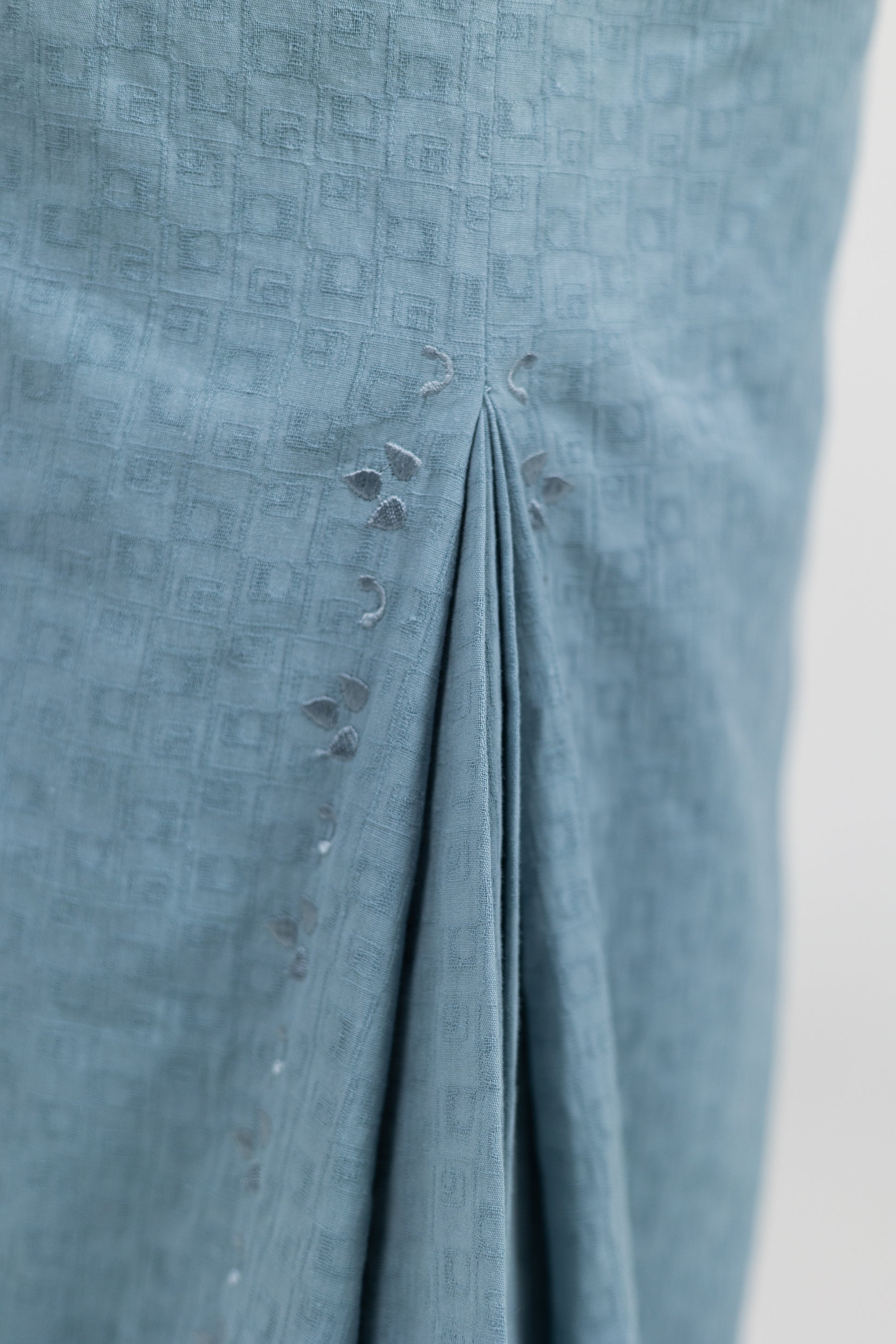 - Textured fabric with embroidery trimmings made of 100% cotton.
