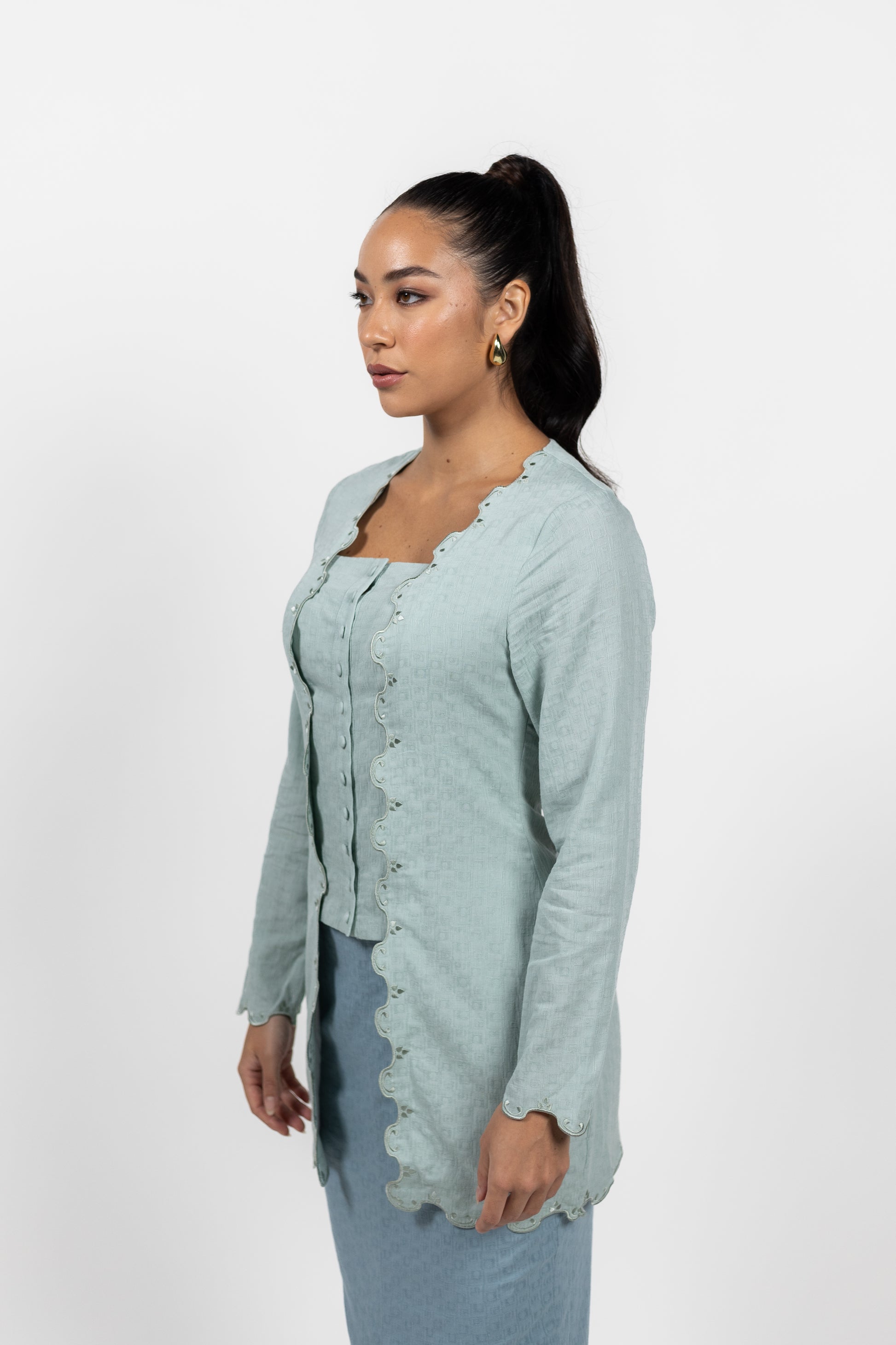 Indulge in the ultimate expression of femininity and beauty with our Cora Kebaya. Celebrate your sophistication and intellect with the sweet embroidery details. Made with soft cotton, this kebaya is a symbol of love and tenderness. Elevate your style with this elegant and exclusive piece.