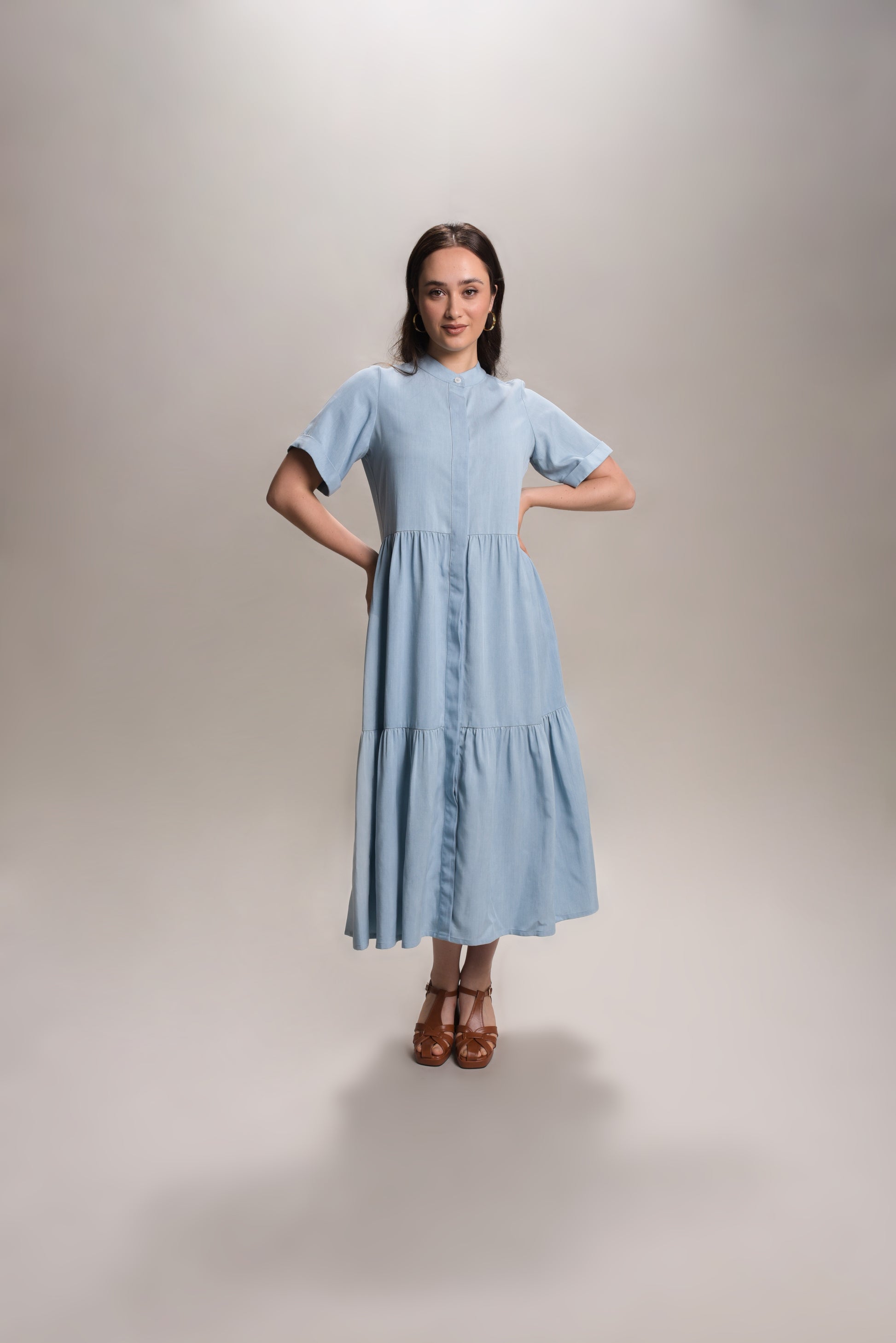 We love the Daisy Dress for its incredible versatility and style. Whether worn as a flowing maxi dress or layered as chic outerwear, this dress adapts seamlessly to any occasion with the addition of a belt and accessories. Available in a variety of fun colours, it complements your accessories and suits diverse environments. The short sleeves feature folded details, allowing you to experiment with different looks by folding them higher. Its loose fit provides a breezy, resort-like feel, accommodating all body types comfortably. Crafted from soft Tencel material sourced from Japan, the Daisy Dress ensures maximum comfort with its naturally cool and breathable fabric that flows beautifully. And our favorite feature? The subtle embroidered tagline, echoing our brand's vision, making this dress a part of your beautiful story.