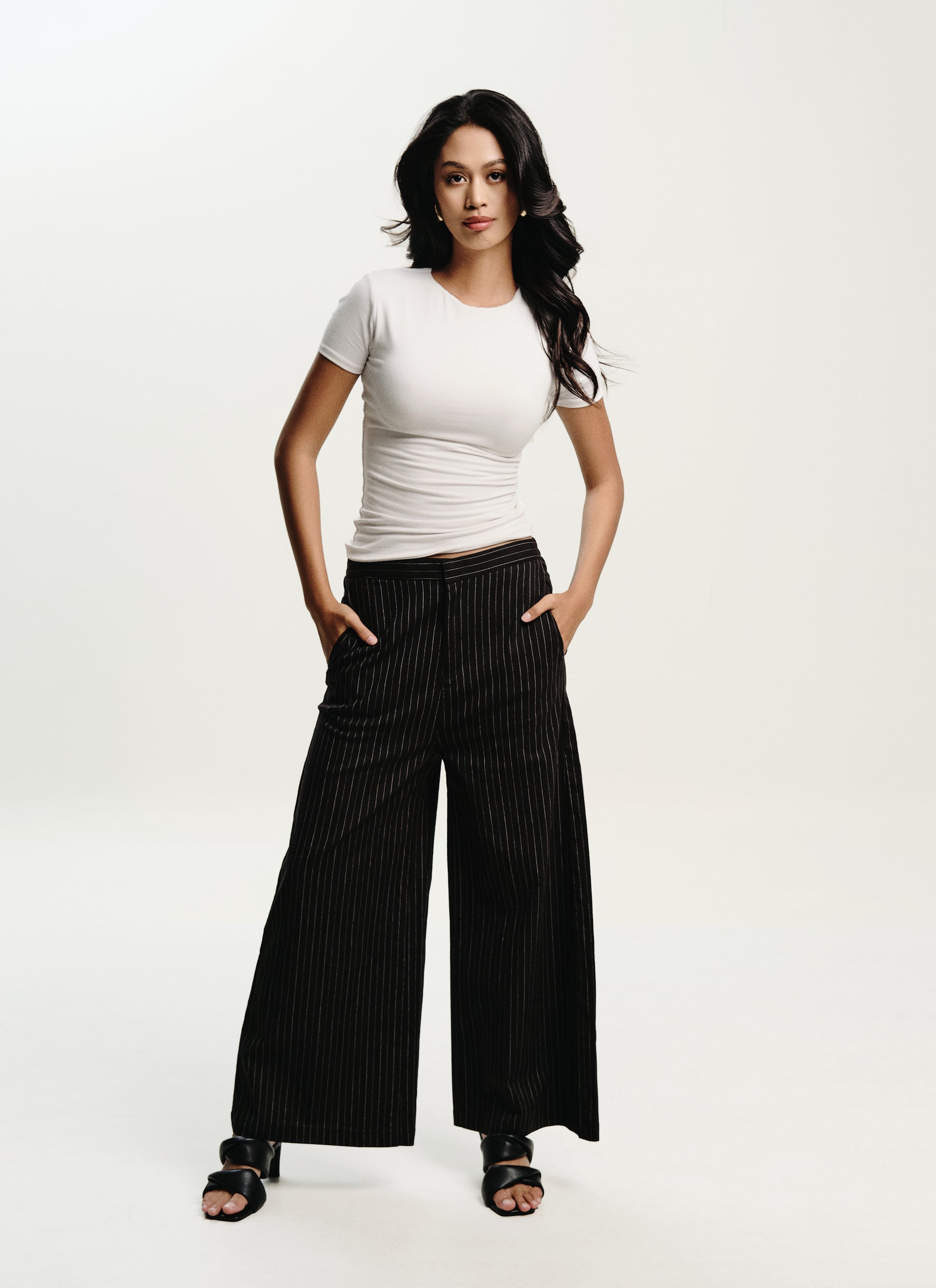 Discover the ultimate sophistication with our Ebony Wide Leg Trousers. The subtle pinstripe pattern creates an elongating effect for your legs, while the neutral colours add versatility to your wardrobe. Perfect for any occasion, these trousers can be styled in countless ways, making them a must-have for any fashion-forward individual. Pair them with your favorite top or complete the look with the Ebony Tunic Shirt. Elevate your style today.