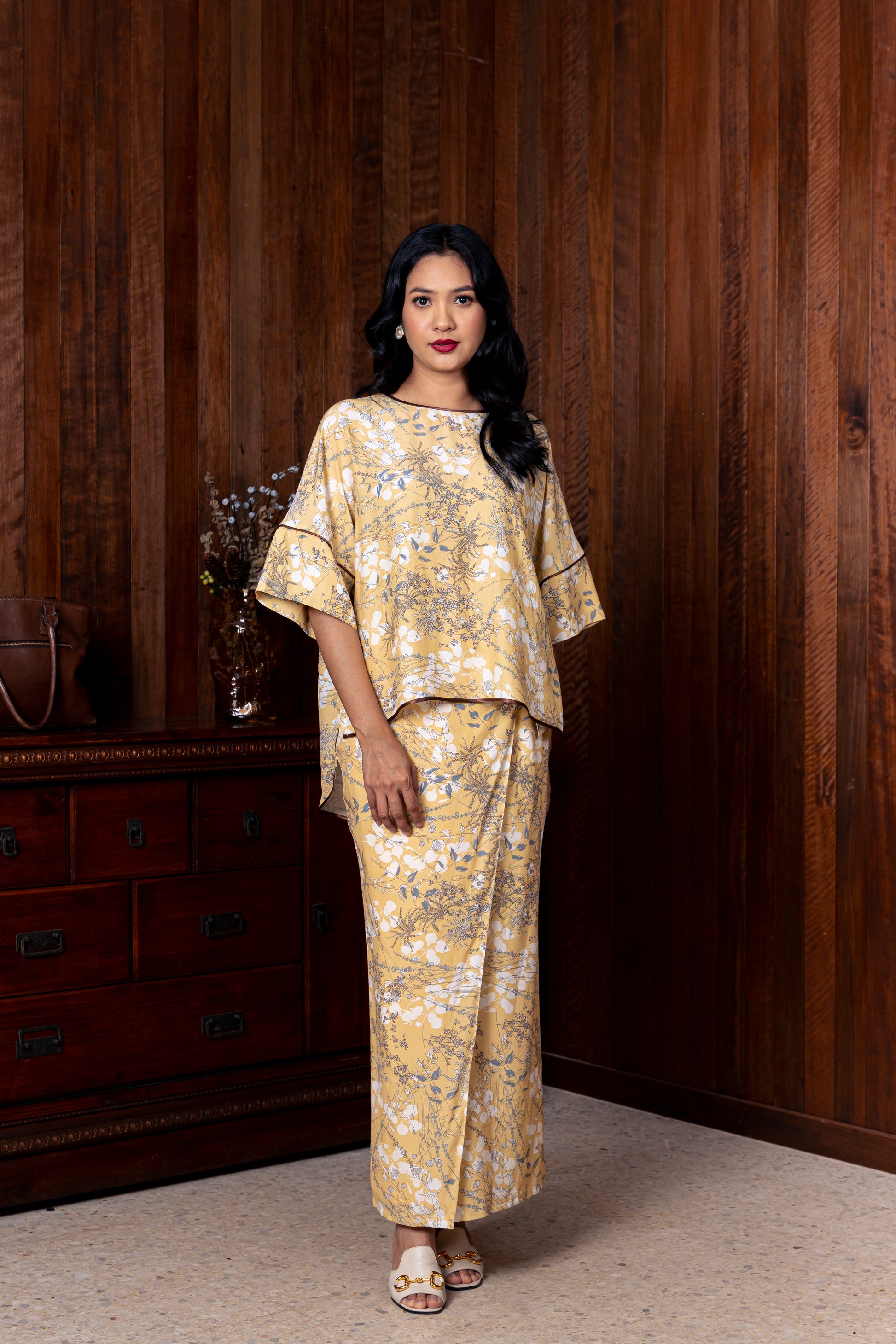 The Julia Kurung Set is a modern reimagination of the classic kurung kedah, designed with comfort and practicality in mind. Made from soft, cooling printed rayon, it’s perfect for tropical weather—whether you’re celebrating festive seasons or on a laid-back vacation. Tuck in the blouse for a polished, formal look, or wear it loose for a relaxed vibe.