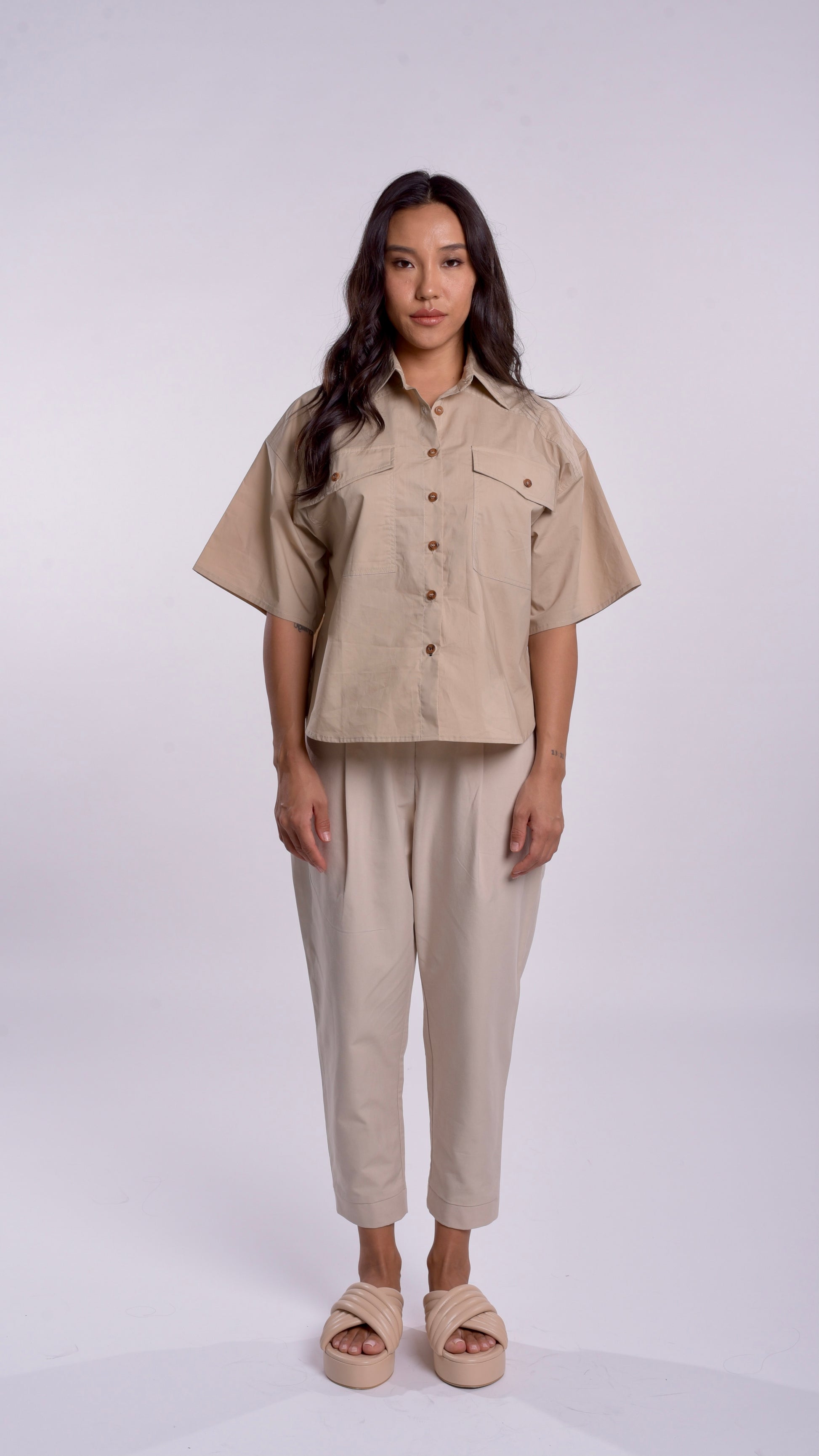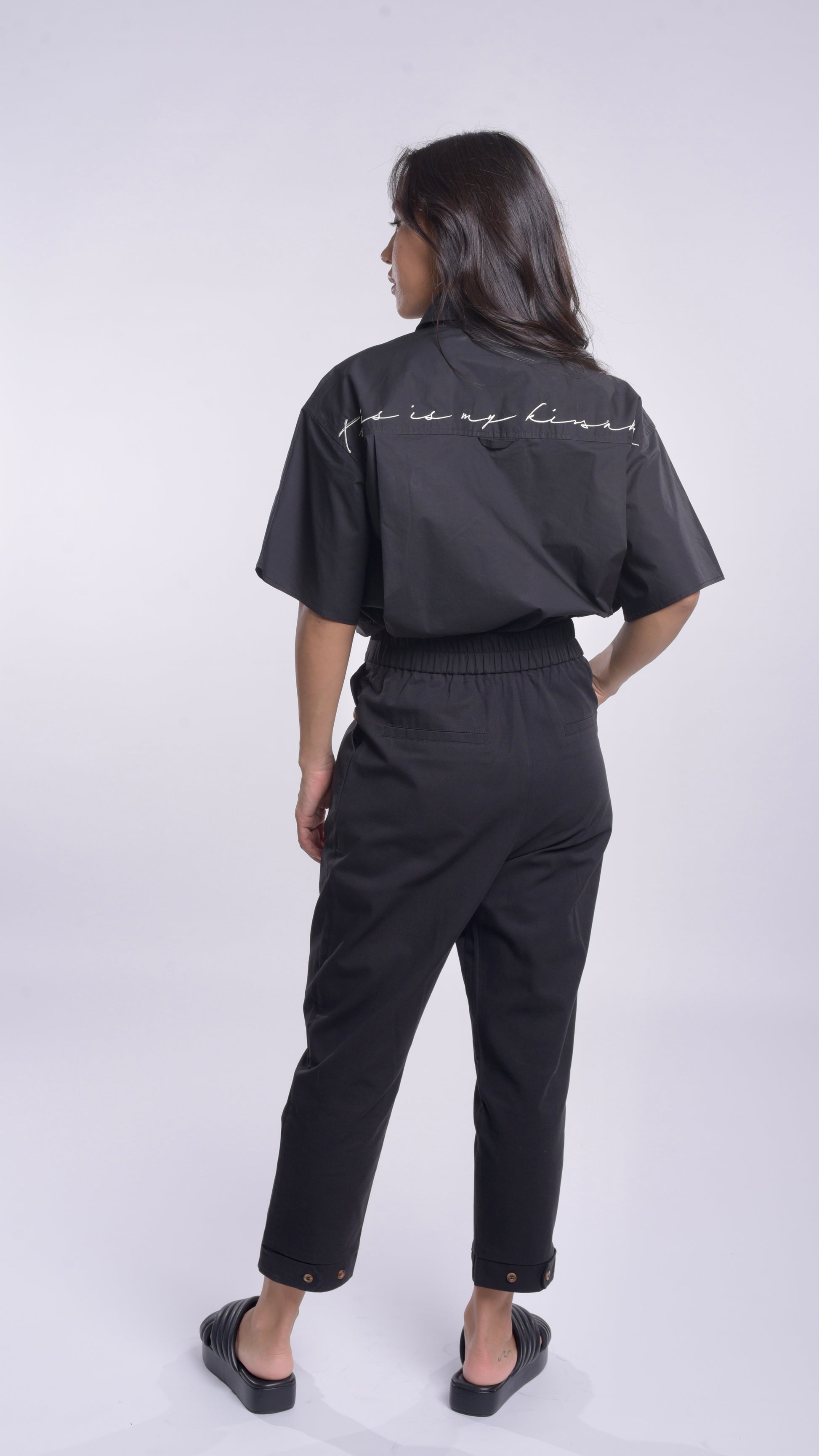 We prioritise your comfort, and these are the only trousers you could possibly need. Made of Tencel and cotton blend, these trousers have the right softness for your comfort, and the right structure to give both a relaxed and formal style. Designed with elasticated and buckled waist for easy wear, and front pleats for easy movement and the extra space for dessert. The adjustable cuff ankles allow you to play with different looks and styles. Partner these trousers with our matching Lija shirt to achieve the coordinated sophisticated urban look, or simply pair it with your favourite tops because these trousers are just so versatile, you’ll never go wrong.